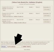 08:06, 30 May 2023 EHTracker torrent upload.png (file) 86 KB Eta-mu (talk | contribs) An image indicating the location of the upload field for a torrent file for a gallery. 1